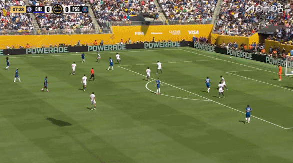 第43分鐘,切爾西反擊機會,帕爾默推進后送出直塞,禁區內若昂-佩德羅單刀球挑射得手,切爾西3-0巴黎圣日耳曼。↓