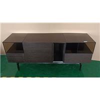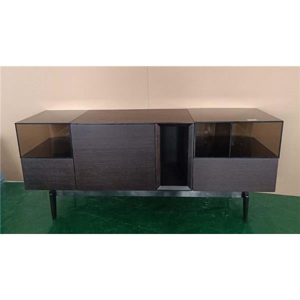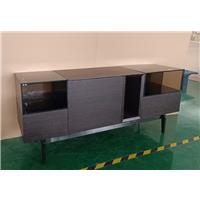 煙熏橡木皮、電鍍不銹鋼、鋼化茶玻璃