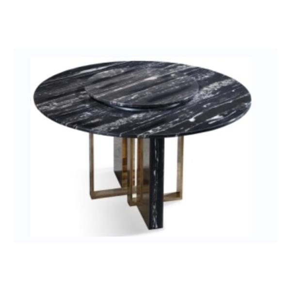 304#鏡面黃銅不銹鋼底座+銀白龍大理石臺面及桌腿