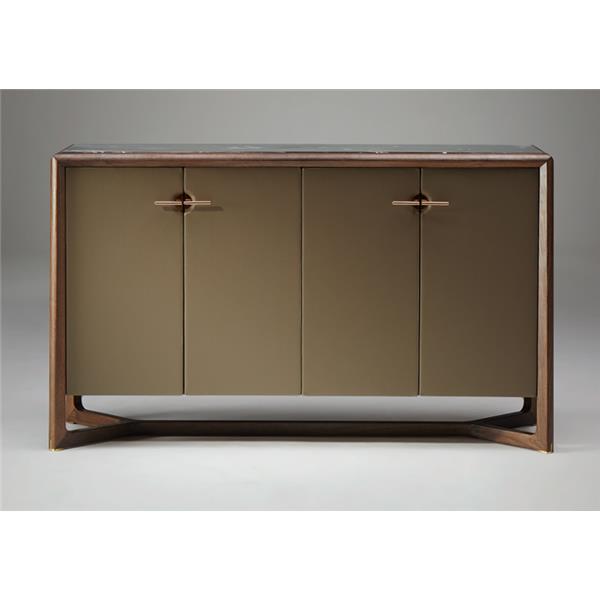 黑白根大理石臺面+胡桃木皮飾面+環保實木多層板+柜體捫優質超纖皮 +304#拉絲黃銅不銹鋼