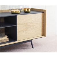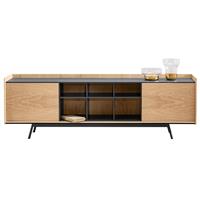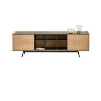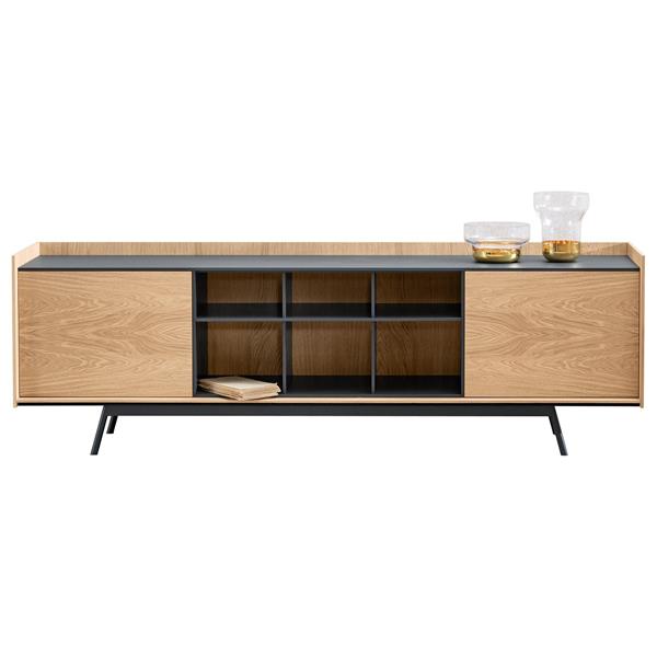 實木多層板+深灰色環(huán)保油漆+白蠟?zāi)灸酒?#x2B;深灰色烤漆啞光鐵藝