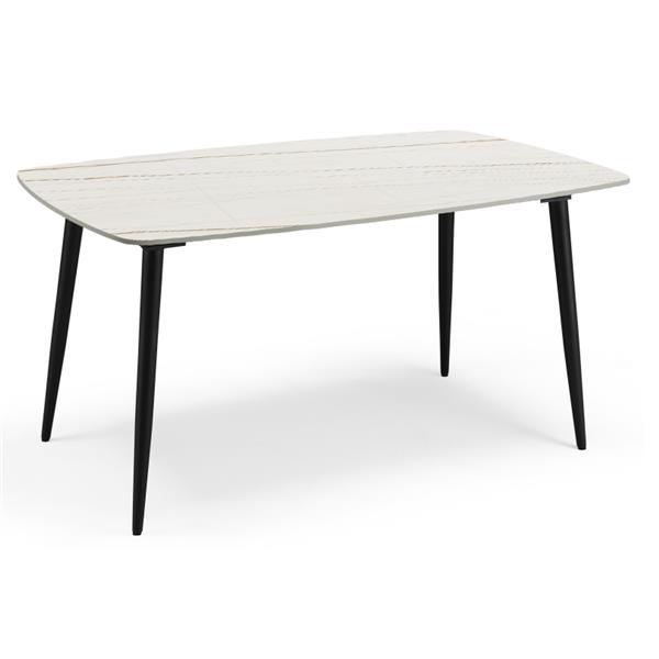 10mm勞倫白金巖板桌面+黑色磨砂烤漆鐵藝