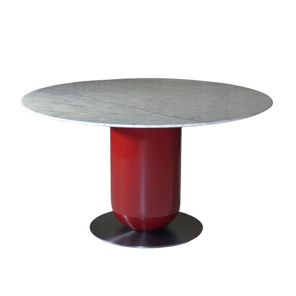 實木紅色烤漆+天然中花白大理石+黑鈦五金底盤